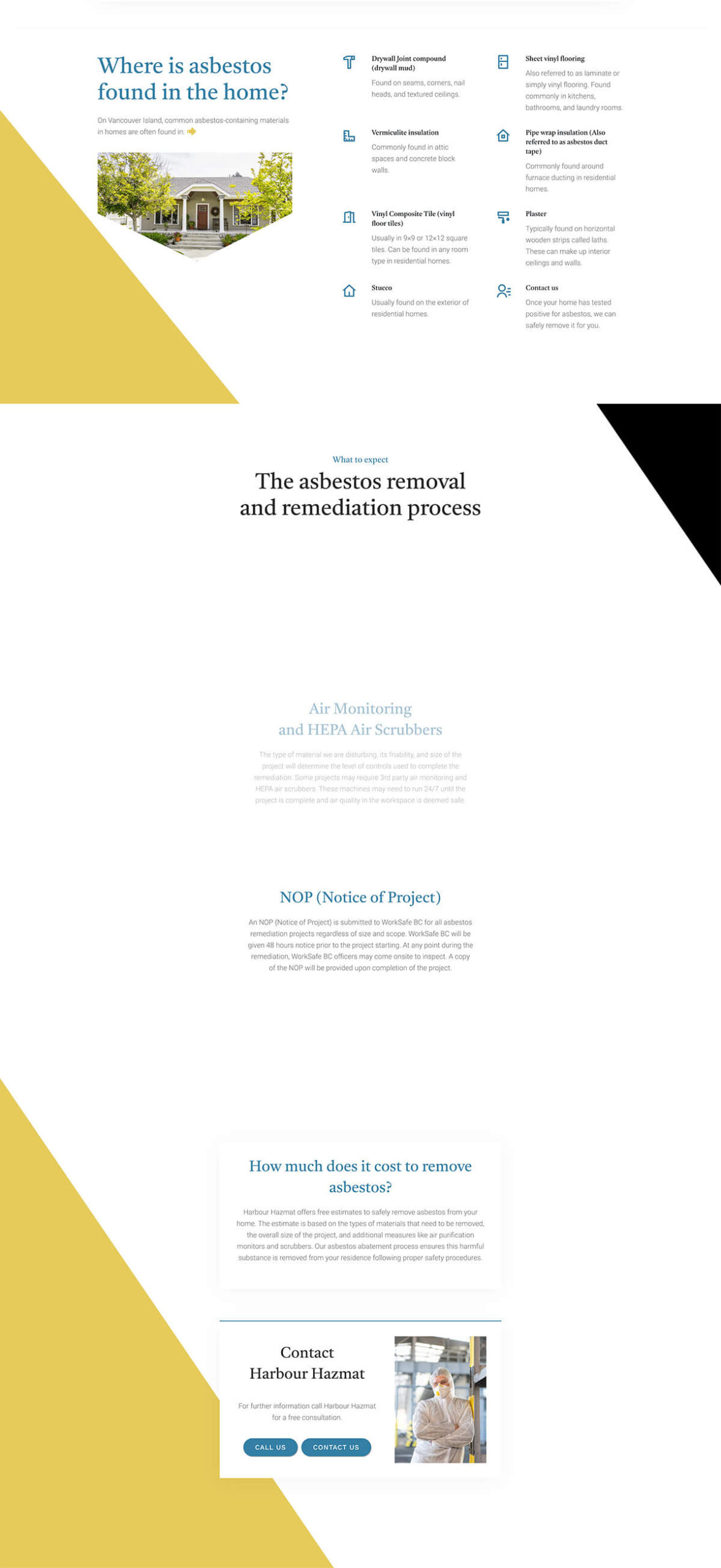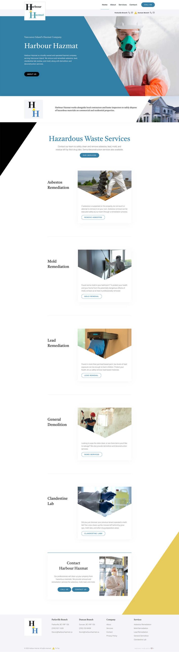 We are always thinking of the user when it comes to design; we first split Harbour Hazmat’s services into five categories. We created a page for each service, and a call to action with contact information at the bottom of every page, which would promote action and ease of use for the user.